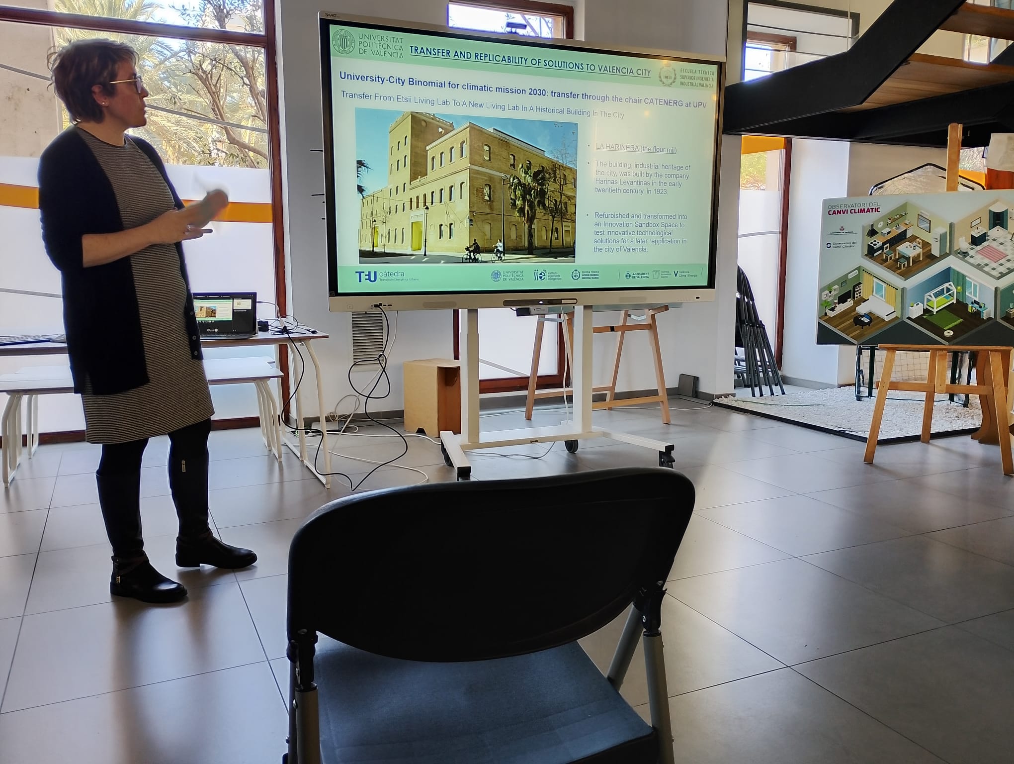 - Nearly Zero Energy Buildings: Finally, Mar Cañada (CATENERG – UPV) and Mar Ferrer (VIC) presented the case of La Harinera, detailing its transformation into an nZEB model and its role as an innovation hub.